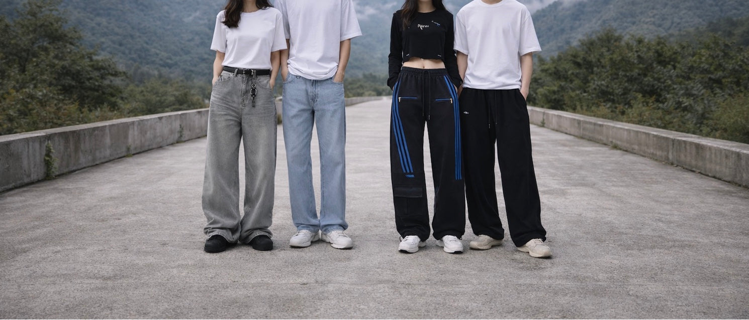 From distressed denim and pleated cargos to wide-leg sweats and sporty casual pants, we focus on quality fabrics, thoughtful details, and relaxed silhouettes so you can express your style with confidence.
