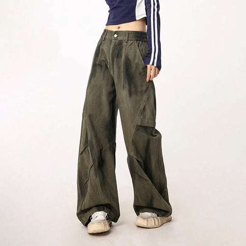 Distressed Patchwork Cargo Pants – Loose-Fit Multi-Pocket Trousers -